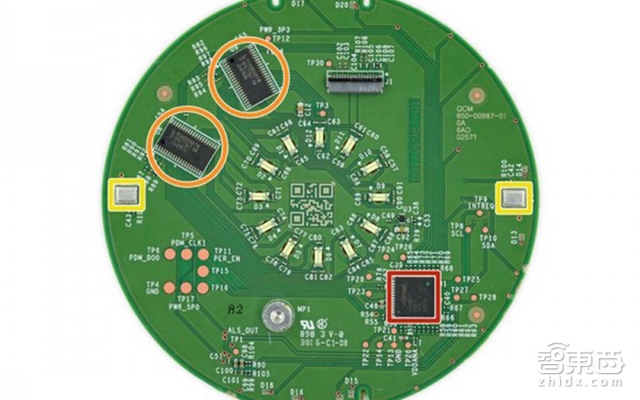 (叮咚音箱A1的7+1环形麦克风阵列,黑色为麦克风)