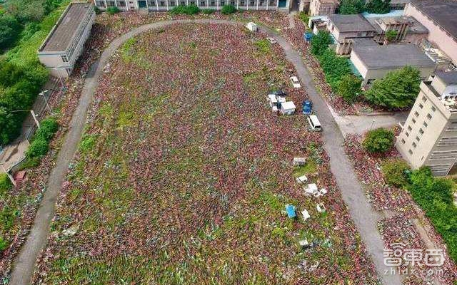 安徽一处荒废的学校中,上万辆单车堆满了校园。