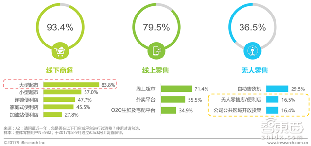 从市场渗透率来看,最近一年,在线下商超消费过的用户占比高达93.4%,通过线上零售渠道进行过消费的用户占比79.5%,而通过无人零售(自动售货机、无人零售店/便利店、开放货架等)进行过消费的用户仅占36.5%。