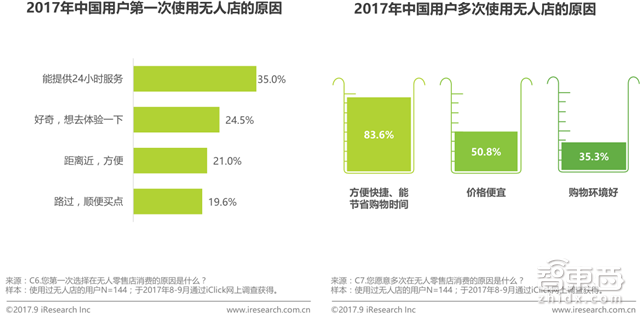 从消费动机来看,用户第一次选择在无人店购物的原因各不相同,35.0%的用户是由于无人店能提供24小时服务而选择无人店进行消费。高达83.6%的客户多次选择在无人零售店消费的原因是由于无人店方便快捷、能够节省购物时间,方便快捷是用户选择无人店消费的最重要原因。