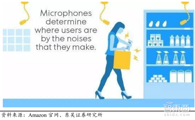 亚马逊Amazon Go的技术方案是利用监控系统、麦克风捕捉、GPS 以及WIFI信号定位。当消费者扫码进入超市后,监控系统就会认出“他”是谁并一路“跟踪”,店内麦克风会根据周围环境声音判断消费者所处的位置。此外,用户手机的 GPS 以及 WIFI 信号亦能协助定位的实现。当“他”站在货架前准备购物时,货架上的相机系统便会启动,拍下“他”拿取了什么商品和离开货架时手中有什么商品。
