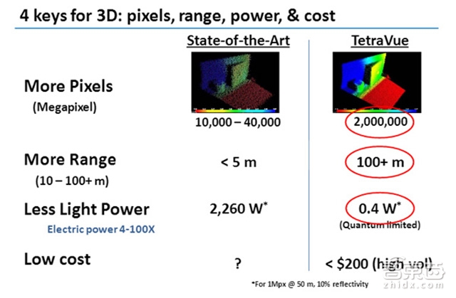 在毫米波雷达市场上顺风顺水的博世,则在今年2月投资了采取Flash技术方向的TetraVue,后者的固态激光雷达分辨率很高,可以超过200万(目前市场上在售的分辨率最高的是Velodyne的64线激光雷达,每秒激光点云出点数120万)。