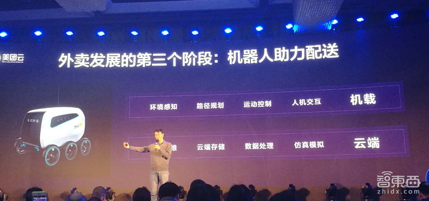 美团点评科学家夏华夏在峰会上也介绍了美团点评在AI方面的研发方向。夏华夏表示,目前美团点评正开发配送外卖机器人。毕竟美团点评的主营业务之一就是外卖服务,夏华夏提出了外卖平台发展的三个阶段: