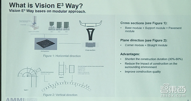 结构化方面,E³ Way的高架由底座、支柱和路面三部分组成,为了节省城市空间,其底座是埋在路面之下的,而支柱也采用了体积较小的三角形设计,从而可以让其修建在拥挤的城市道路中。