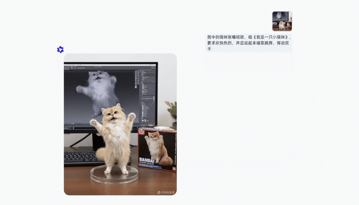 如用户输入一张图片和一段“小猫一边唱歌,一边跳舞”的文字,千问APP便能生成相关视频。据悉,千问App公测仅一周,下载量就突破1000万次,超越ChatGPT、Sora、DeepSeek成为史上增长最快的AI应用。