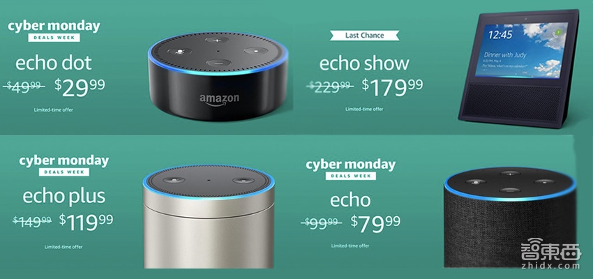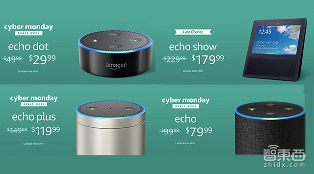 此外,亚马逊Echo Dot 降价20美元(约132元),售价为29.99美元;Echo Plus降价30美元(约198元),售价为119.99美元;Echo Show降价50美元(约330元),售价为179.99美元等,降价幅度均在百元以上。