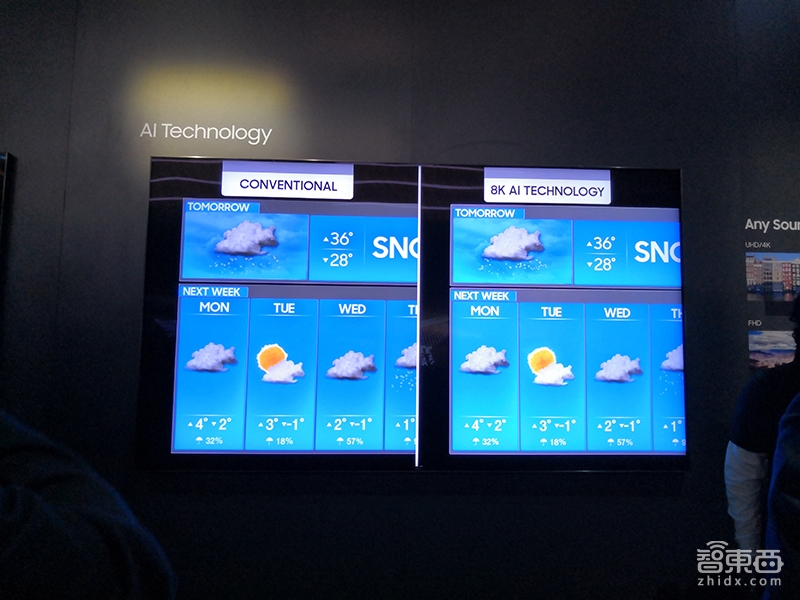 而本次三星的这台AI电视则大不一样,对于追求画质、追求屏幕显示的三星来说,它当然是使用AI技术对屏幕显示进行了优化,使得屏幕画质更细腻、更优秀。三星的这个AI电视展位非常火热,聚集了一大批参观者围观。
