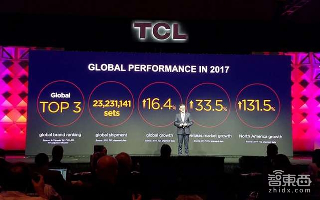 1月9日,TCL在美国拉斯维加斯新品发布会上公布了去年的销售数据,全年彩电总销量达23231141台,超过2200万台计划目标。其中,TCL在美国市场表现最好,销量从2016年的175万台增长到2017年的400万台。