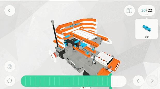 Jimu机器人可以让用户进行创意搭建,用户可以按照Jimu APP里的“动态搭建”图纸功能自行搭建Jimu 机器人,可以通过缩放、360度旋转Jimu APP中的3D可视化图纸,直观地学习每个分解、搭建的步骤。除官方呈现的机器人模型外,用户还可以自己设计机器人造型,编辑动作,创造属于自己的独一无二的机器人。