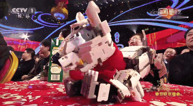 开场歌曲年夜饭更是融合了多项元素,好不热闹!台上沙溢胡可、凤凰传奇、容祖儿等明星唱的热热闹闹,台下惊现24只Jimu机器狗,戴着红围巾齐刷刷地在嘉宾的圆桌上配着音乐跳舞。它们动作整齐划一,偶尔还舔舔爪子、摇尾巴卖个小萌,还不忘和舞台上的演员互动,可以说是既敬业又可爱了。