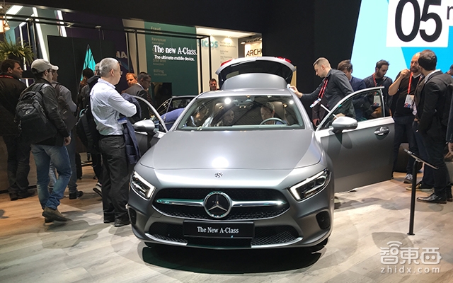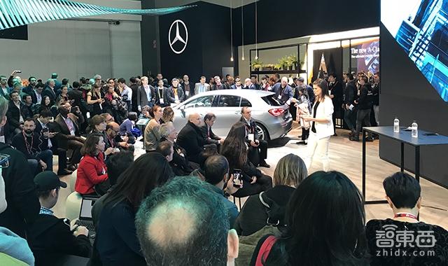 奔驰在6号展馆搭建了一个不小的展台,拉来了其在去年8月发布的约会神器——Smart Vision EQ Fortwo概念车和刚发布的全新A级、带来了其在AR和AI领域的两个小产品,甚至还搭建了一个圆形会场,请奔驰的高官现场开讲解AI、区块链、可穿戴设备等前沿科技,好不热闹。