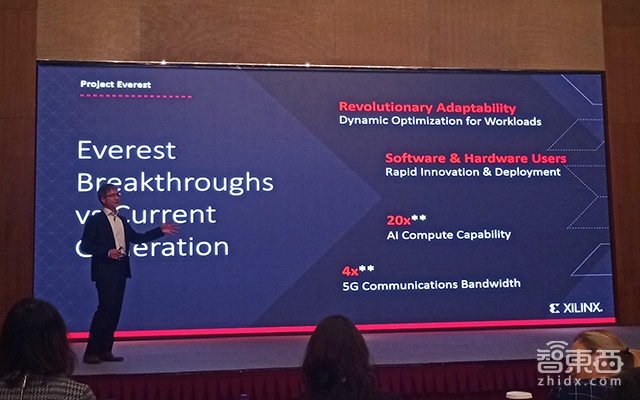 第一款ACAP产品系列,将是采用台积电7nm工艺打造的、代号为“珠穆朗玛峰(Everest)”的产品系列,该产品将于今年年底实现流片。该款产品能提供比赛灵思VU9P产品(在数据中心内布局最广泛的产品)高20倍的AI计算能力,并将5G通信信号处理性能提高4倍。