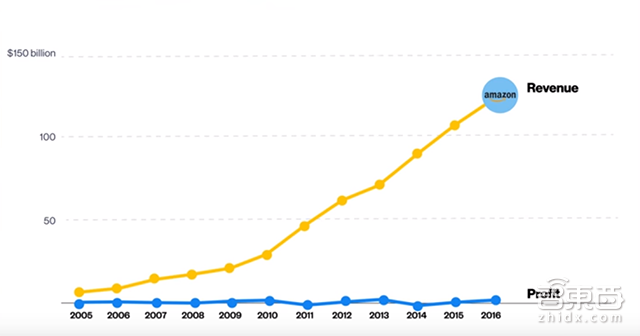 从2005年到2016年,亚马逊的销售量年年攀升,但是利润一直都少得可怜,亚马逊一直都被质疑到底靠不靠谱?不过贝索斯根本不care这些质疑,他觉得这都是短期的质疑而已,他着眼的是长期的发展。但是,这还不是贝索斯的厉害之处,能把一个故事说得投资人都深信不疑,这才是他最厉害的地方,更何况这个故事还长达十几年,足以见得贝索斯卓越的嘴炮功力。