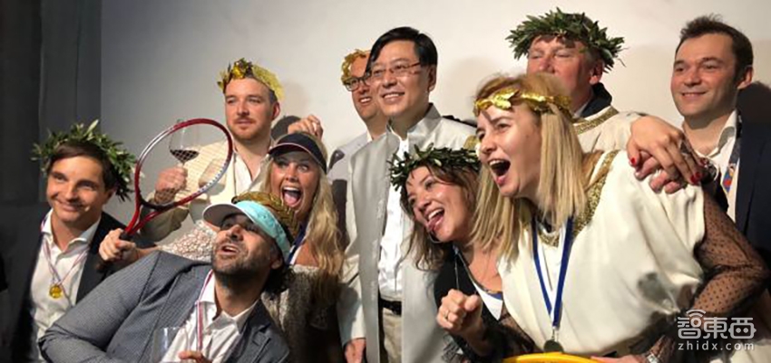 5、在晚宴上,各个国家的员工争相和元庆合影,他们称呼他为“YY”,拉着他围成一圈又唱又跳,还搞怪自拍。