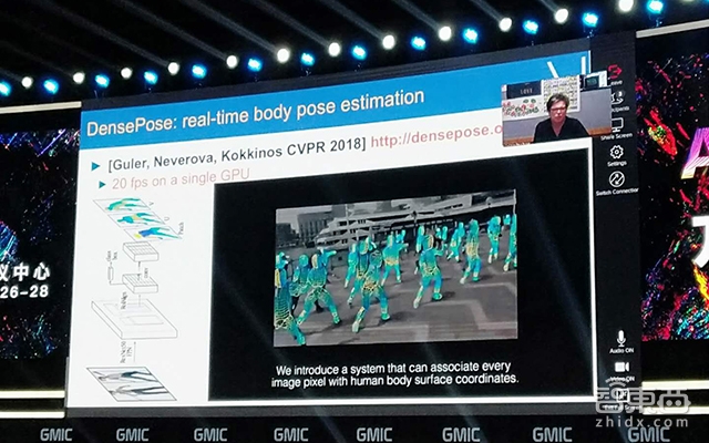 首先杨立昆通过视频连线的形式做了大会的主题演讲,他主要分享了Facebook近期在AI领域一些新的研究与探索,比如监督学习支撑了今天的AI系统,通过FB的深度神经网络可以实现200多种不同类别物体的识别,并能够对多人场景下进行动态的人体行为跟踪。但是下一步需要将深度学习和推理相结合,通过记忆模块来构建记忆网络,能够成倍的增强现在的神经网络。