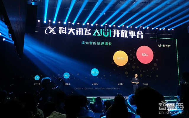 在发布新品前,科大讯飞先简单干脆的秀了一下肌肉,展示近期取得的一些成果。消费者BG执行总裁于继栋分享到,2017年讯飞开放平台开发者的数量达到51.2万,而2018年如今已经达到80万,其中开发者主要集中在教育、通讯、机器人及智能硬件领域,其中教育类开发者占到20%。