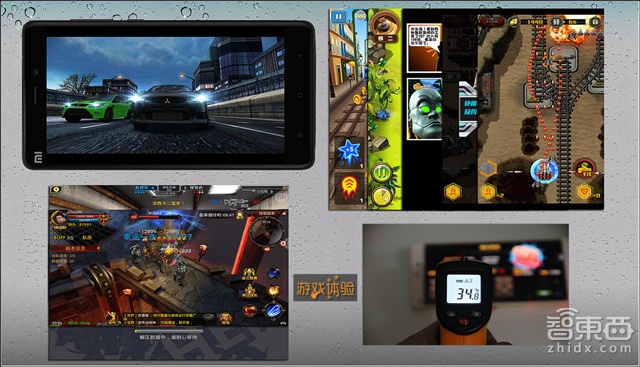 ▲游戏对于高通810的8核cpu 和4gb的运行内存来说游戏仅仅是小菜一碟。显然CPU在运行的时候有些能力过剩,发热量并不是很大,运行半小时的时候大概温度在35摄氏度左右,个人认为真正考核手机性能部分不是游戏了,而是摄像头在各个大数据运行的时候温度会达到40多度,这个也是试用了多款手机后发现的。因为如今摄像头的优化有非常庞大的数据进行处理,这个数据已经大于一般游戏了。