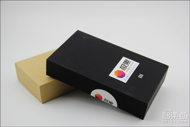 △这次小米为了区分小米note和小米note顶配版,第一次尝试用黑色仿细纹皮质包装,包装正面的MI的标志性的LOGO都是做成了金属嵌入式的,工艺类似小米三后盖上的LOGO设计,档次一下提上来了,除了感觉整个包装质感要提升了一个档次,和之前的小米包装盒设计并没有差别。背部还是和之前的小米手机设计相差无几,背面介绍一下产品的基本信息。