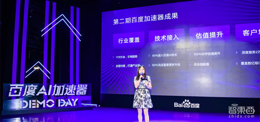 据她介绍,百度AI加速器第二期于今年3月23日开营,经过五个月孵化,第二期成员企业的总体估值翻一番,有5家企业获得新一轮融资,20多家企业预计今年总利润得到140%的增长,11家企业发布自己的新产品,15家完成产品迭代更新,累计B端客户超过2万家,C端用户过亿。