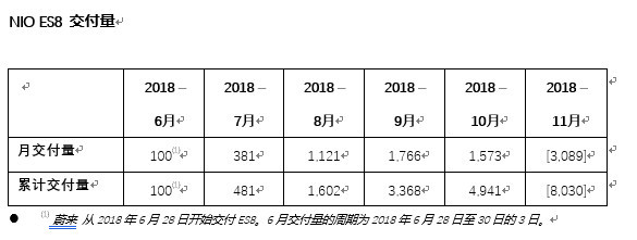 2、蔚来11月交付3089辆ES8 即将达1万台