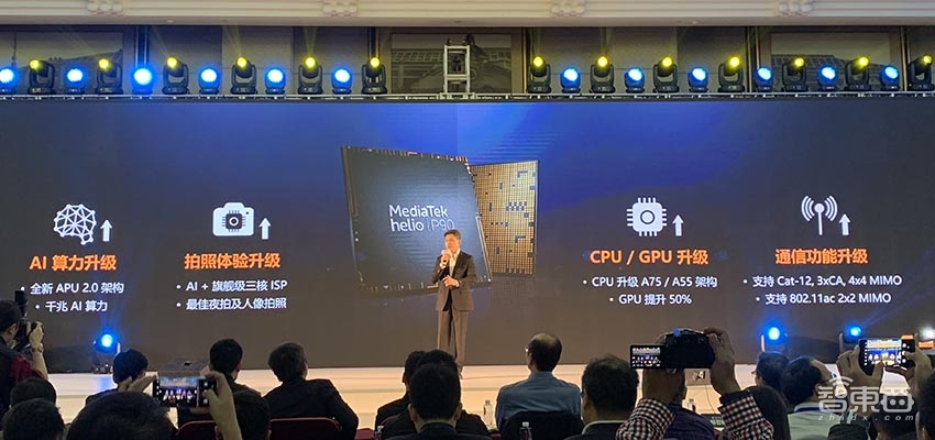智东西12月13日报道,联发科今日在深圳正式发布Helio P90系统单芯片,主打AI性能,内置升级版AI引擎APU 2.0,其中增加了独立的AI加速模块。联发科表示,Helio P90的运算性能比Helio P60和Helio P70提高了4倍,高达1127GMACs(2.25TOPs),功耗整体降低50%。
