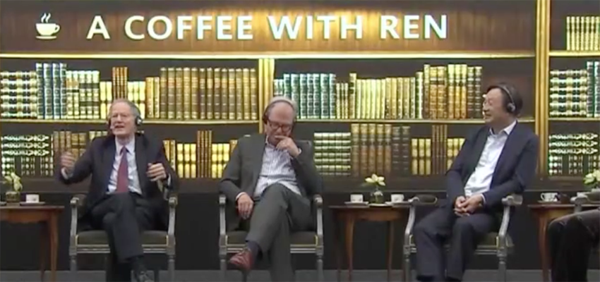 智东西6月17日消息,刚刚,华为创始人任正非与美国两大数字时代著名思想家乔治·吉尔德(George Gilder)、尼古拉斯·尼葛洛庞帝(Nicholas Negroponte)、以及华为高级副总裁陈黎芳进行了一场100分钟的对话访谈,由CGTN主持人田薇主持。