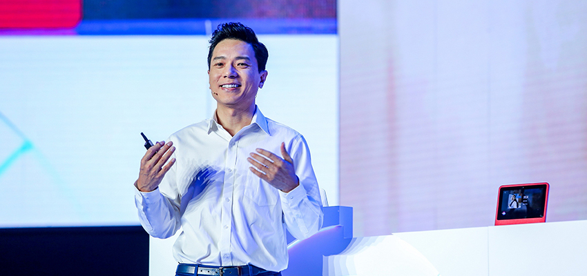 李彦宏首先上台,分享了百度在智能音箱方面的技术新进展——全双工、免唤醒。