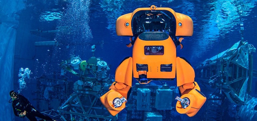 智东西2月17日消息,几个月前《IEEE Spectrum》的特约编辑Evan Ackerman来到了美国宇航局用于训练宇航员的泳池,去看Houston Mechatronics公司制造的机器人潜艇Aquanaut,它可以熟练的在水中变成人形。