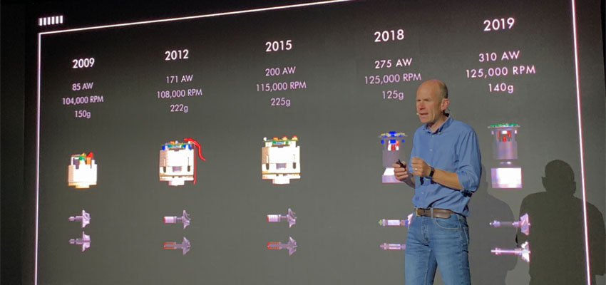 设计过程中,会用到机械仿真到空气动力学仿真,用以改善空气流动条件以降低损耗,湍流功能、伪噪声等。同时设计也会不断迭代,以V10马达为例,可以明显看到研制过程中打样的变化过程。