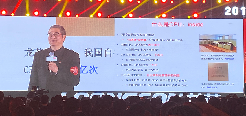 ▲龙芯中科总裁、中科院计算技术研究所总工程师、龙芯CPU首席科学家胡伟武博士