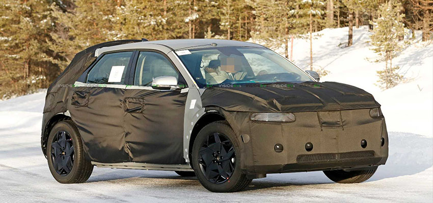 车东西2月13日消息,日前,外媒insideevs发现了现代汽车正在对其新款电动SUV的原型车(内部代号NE)进行冬季测试。