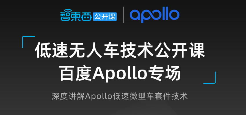 4月30日,智东西公开课联合百度Apollo推出低速无人车技术公开课百度Apollo专场,由Apollo高级技术布道师穆雷生主讲,主题为《利用Apollo嵌入式低速自动驾驶解决方案实现快速部署》。