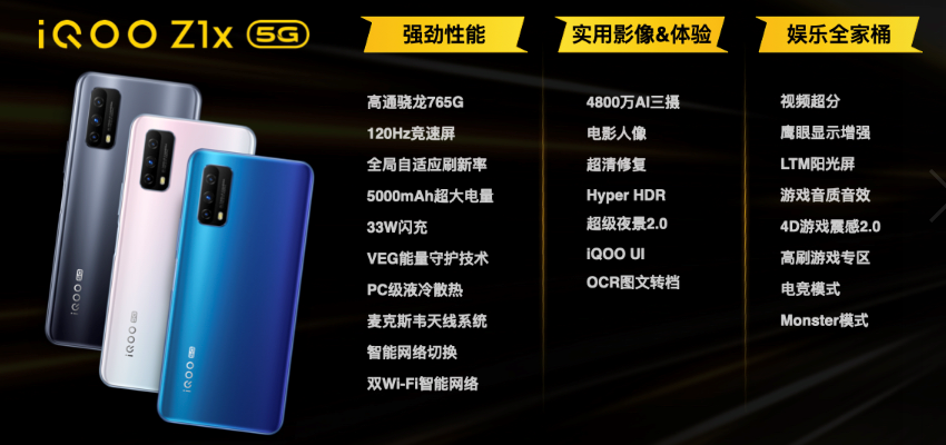 智东西7月9日消息,vivo刚刚发布了中端5G手机iQOO Z1x,搭载骁龙765G,并配备了一块120Hz LCD屏幕和一块5000mAh电池。iQOO产品经理称,Z1x的目标人群是年轻群体,尤其是游戏用户,因此它从硬件到系统都对游戏场景进行了优化。