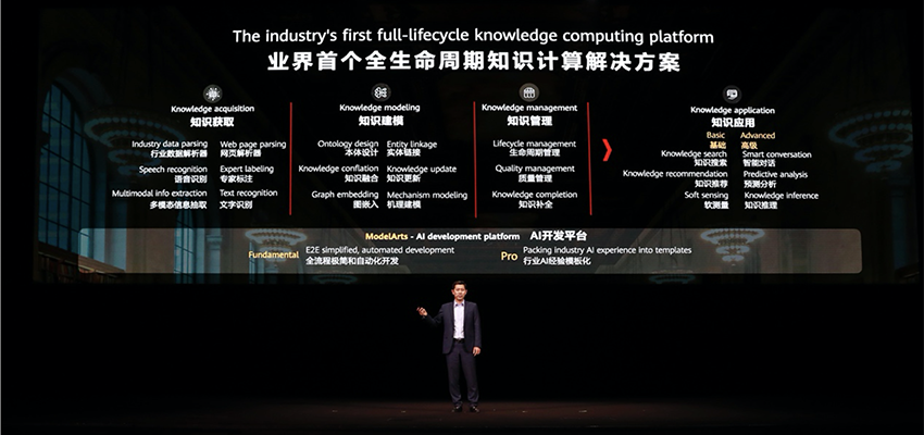 贾永利宣布,华为云正式发布业界首个全生命周期知识计算解决方案,以ModelArts AI开发平台为基础,包含知识获取、知识建模、知识管理,以及知识应用四大模块,覆盖知识在企业的生产环节中的全生命周期。