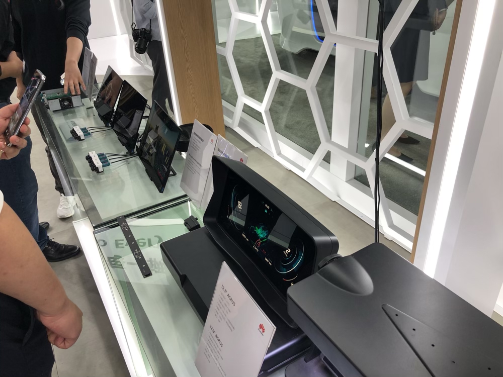 面向智能座舱,华为展出了低反射率的车机屏幕,在灯光直射情况下也能看清显示内容。同时,还有座舱内麦克风阵列、摄像头阵列,通过不同方位的车内数据采集,为车内乘员提供更好的服务。