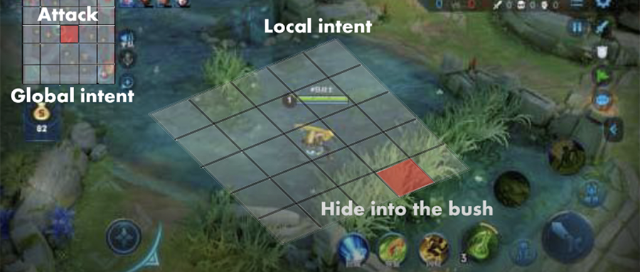 具体而言,研究人员设计了一套适用于MOBA游戏的特征和标签,将AI智能体的行动过程归纳为层级多分类问题,并提出一种同时建模大局观和微操策略的端到端监督学习方法来解决该问题,同时提出了分场景采样的数据预处理方法来进一步增进AI能力。