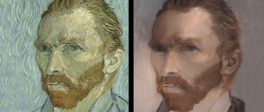 更有甚者,DeepArt同类平台GoArt在为克莱门汀·亨特(Clementine Hunter)的画作《黑族长(Black Matriarch)》添加表现主义滤镜时,直接将主体人物的黑肤色变成了红色,在加工狄赛德里奥的雕塑作品《小男孩(Giovinetto)》时,却保留了艺术品中人物原本的白色肤色。