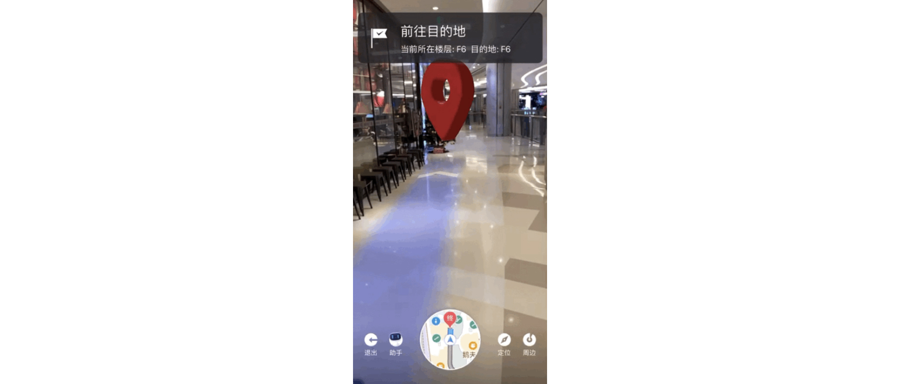 基于AR室内导航,用户自己的位置、所在楼层能够被识别,进而通过箭头和信息标记等AR叠层指引,到达目的地。