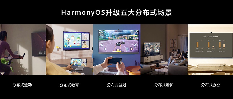 基于鸿蒙系统的分布式能力,华为智慧屏V系列在运动、教育、游戏、看护、办公五大场景进行了系统性的功能升级。