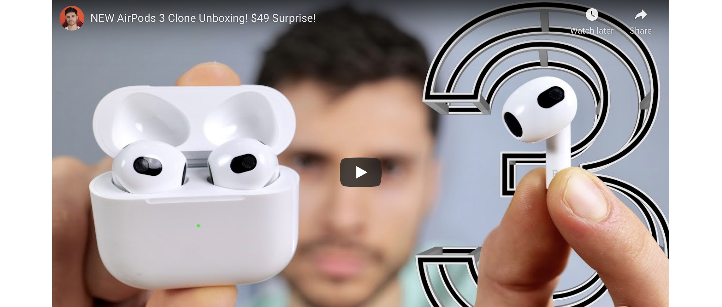 智东西5月8日报道,近日,国外YouTube博主@EverythingApplePro上传了一组AirPods 3仿品的开箱视频,并将其与苹果其他AirPods系列产品进行比较。