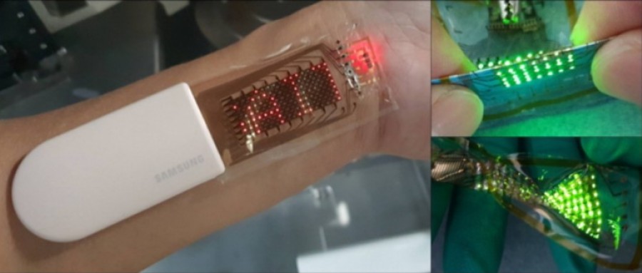 三星发布的这款小小的柔性OLED皮肤贴片产品,使用光学传感器和光学血流量传感器实时记录佩戴者的生物特征数据,为可延展显示器在多领域应用拉开了帷幕。