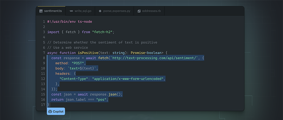 开发者可以写一个注释来描述自己想要的逻辑,让GitHub Copilot来生成代码。