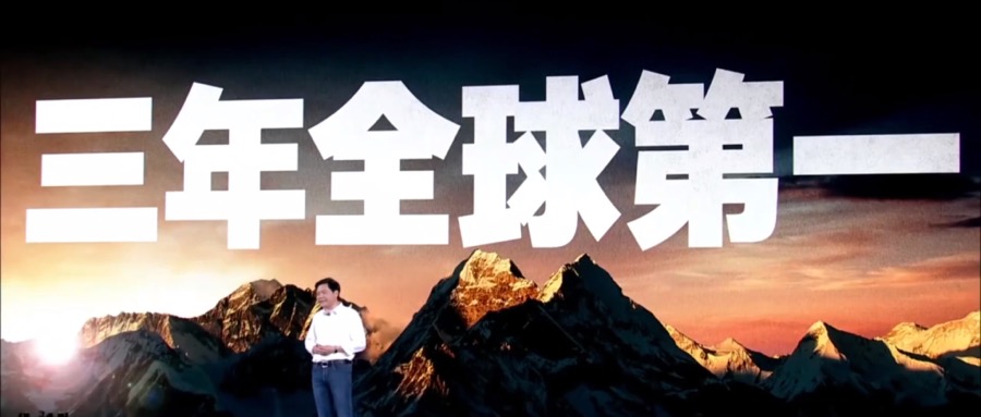 雷军也在发布会上正式宣布,未来三年,小米将正式冲击全球第一。