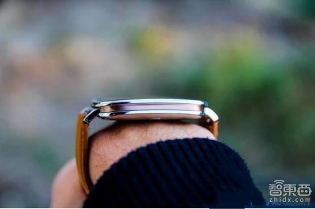 华硕ZenWatch表盘的边角十分圆滑,同时采用了不锈钢材质搭配真正的皮革腕带,质感非常突出;同时机身也不会过大或是过于沉重,意味着它能够很舒适地佩戴在手腕上。