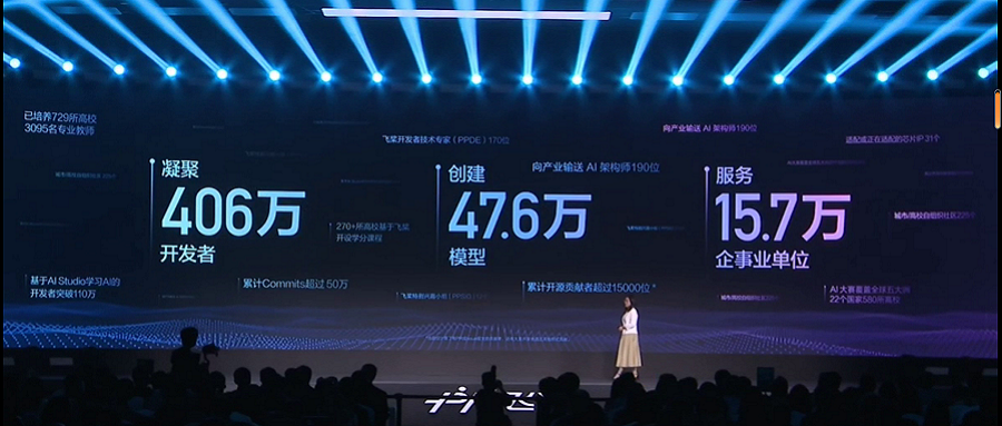 峰会现场,百度集团副总裁吴甜谈道,飞桨到现在已经凝聚了406万开发者,创建了47.6万个模型,服务15.7万家企事业单位。