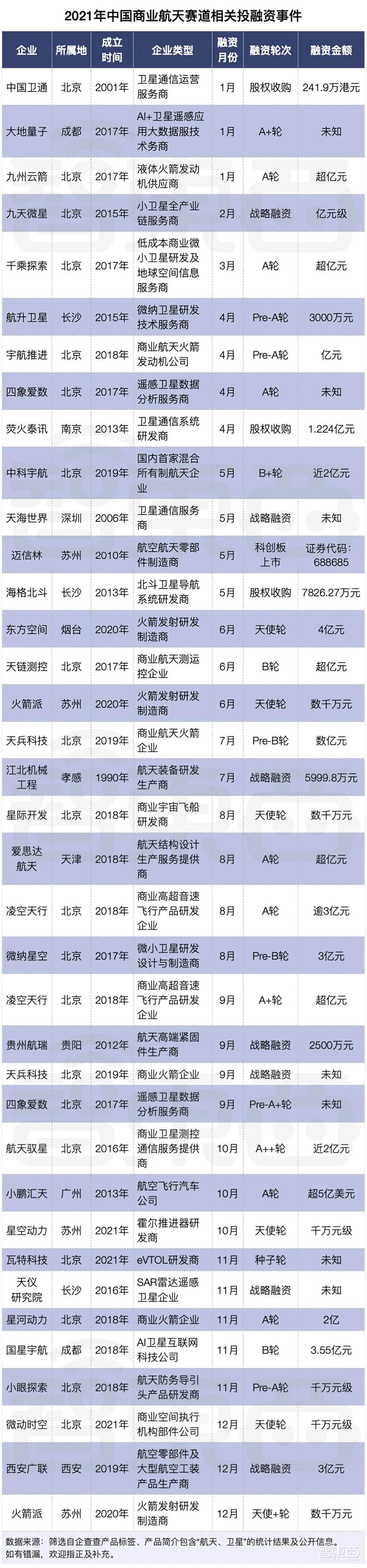 这金额虽看着不大,但在2021年全年,根据天眼查数据,我国商业航天融资才37起共逾64.5亿元。而以今年情况来预测,2022全年我国商业航天融资可能比2021年翻番。