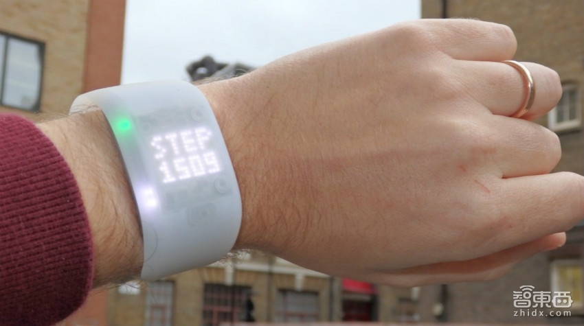 Fit Smart有着34毫米的舒适的硅胶表带,50g的轻质量,17×11的LED矩阵显示器——其上有一排LED条形灯,两个物理导航按钮和位于下方的主操作按钮。