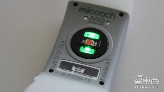 在LED显示屏的下安有 Mio heart-sensor(心脏传感器)。心跳速率在Fit Smart帮助用户选择如何进行锻炼的过程中是很重要的角色。然而miCoach Fit Smart并不是专门的跑步腕表 ——它只是是训练的同伴,用来衡量运动的强度和弹性。