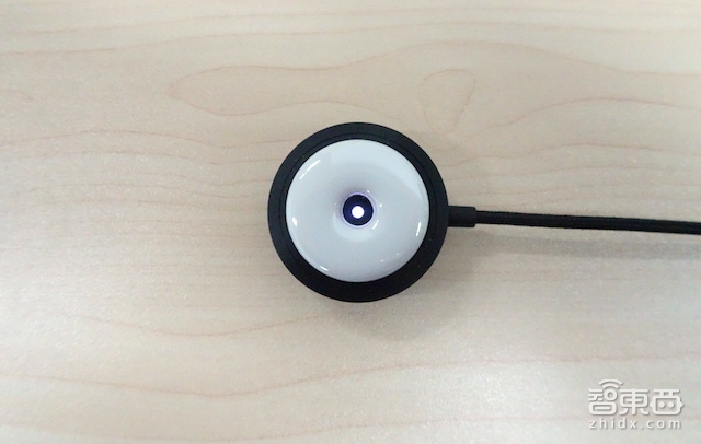 将白瓷主体印有产品型号的背面放置充电底座上,指示灯常亮表示充电,电量充足约2小时,15mAh的扇型电池则可以保持10天左右的续航能力。