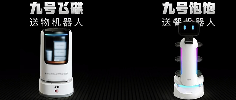九号飞碟送物机器人目前主要应用于酒店送物,搭载32L大型箱体,九号饱饱送餐机器人具有超大托盘,能够在餐厅内自由穿梭。两款室内配送机器人的价格都为19999元起。
